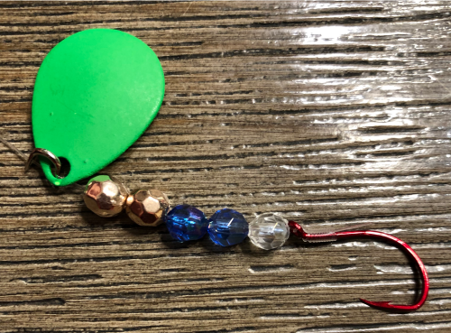 Hand Tied using 12lb Berkley Monofilament and size 2 VMC Hooks.