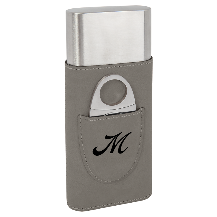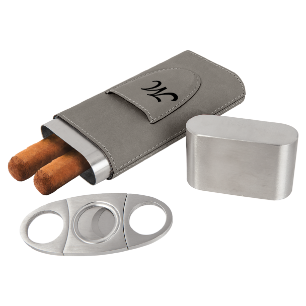 Gray Leatherette Cigar Case with Cutter