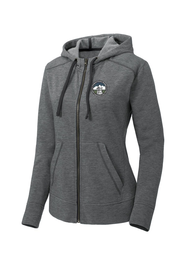 Ladies PosiCharge Tri-Blend Fleece Full-Zip Hooded Jacket - Embroidered Logo-LST293 Sport-Tek Ladies PosiCharge Tri-Blend Wicking Fleece Full-Zip Hooded Jacket LST293 Combining comfort and performance these ultra-soft jackets wick moisture and lock in color. 7.1-ounce 75/13/12 poly/cotton/rayon with PosiCharge technology Tear-away removable label Three-panel hood Hood and neck taping Drop shoulder Front seaming details Coverstitch details Self-fabric cuffs and hem Front pouch pockets Product Spec Sheet Color Swatch