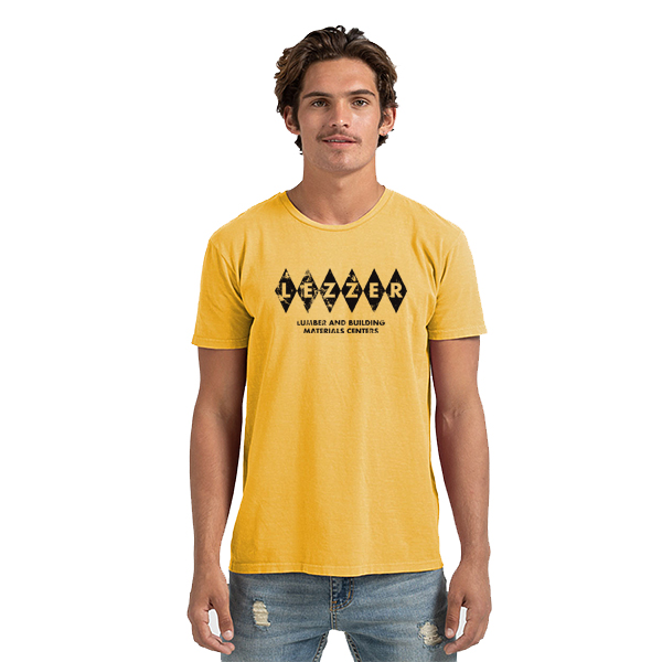 5 oz./yd²., 100% ringspun USA cotton Pigment-dyed Enzymed-washed Ribbed, set-in collar Side seams Tear away label USMCA certified