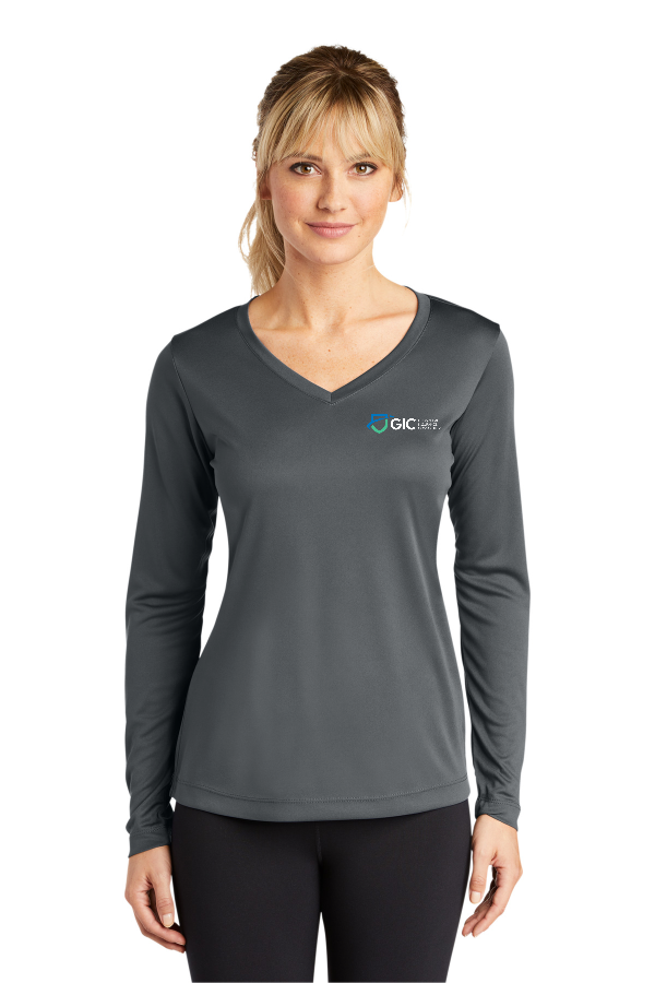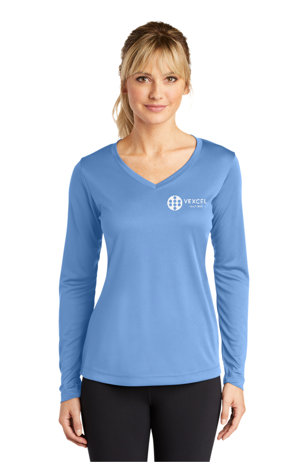 Ladies Long Sleeve PosiCharge Competitor V-Neck Tee Sport-Tek Ladies Long Sleeve PosiCharge Competitor V-Neck Tee Lightweight roomy and highly breathable these moisture-wicking value-priced tees feature PosiCharge technology to lock in color and prevent logos from fading.3.8-ounce 100% polyester interlock with PosiCharge technology Removable tag for comfort and relabeling Self-fabric V-neck Set-in sleevesGiven the extreme heat required for sublimation please consult with your decorator. It is highly recommended to sample test product by color before production. Product Spec Sheet Color Swatch