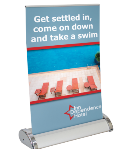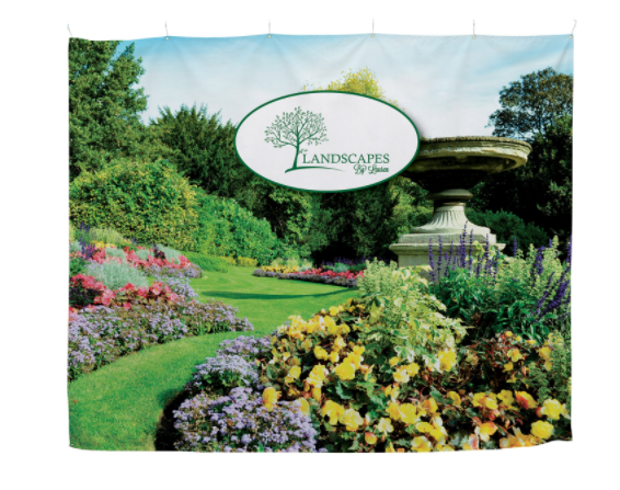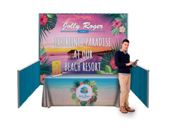 An existing pipe-and-drape system can be transformed into a branded booth space with this convenient kit.