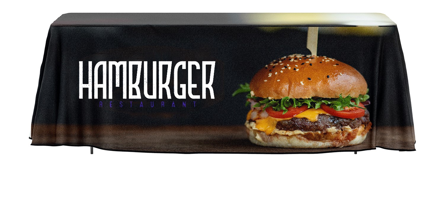 The table throw has a draped look, and it can be dye sublimated with your artwork