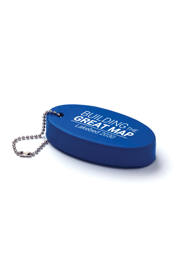 Floating keychain with a beaded chain attachment. This product ensures that boat and car keys do not sink if they are dropped in the water.