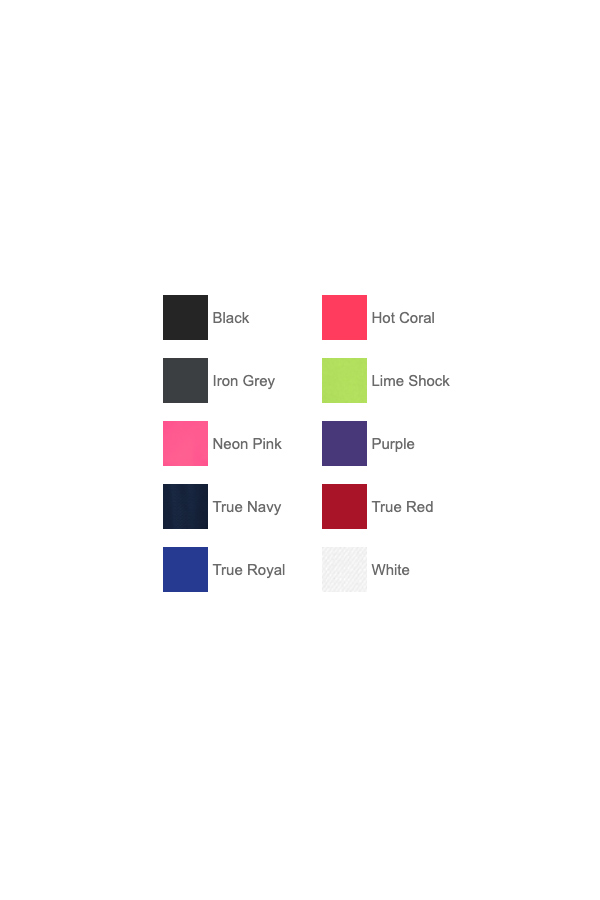 3.8 oz. 100% poly interlock w/ PosiCharge technology. Removable tag. Gently contoured silhouette. Self-fabric binding at neck & armholes.