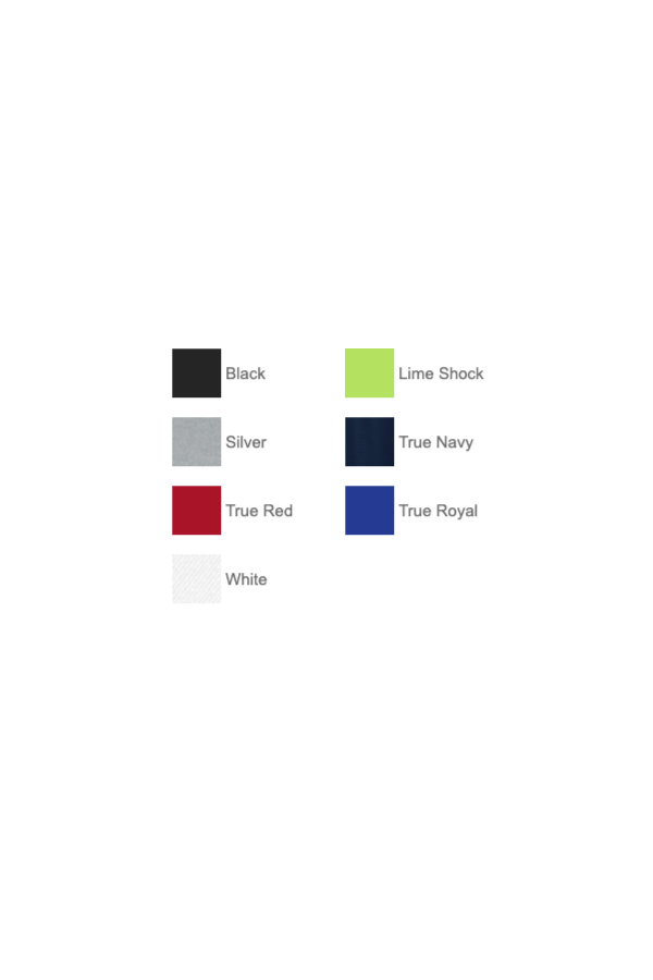 3.8 oz. 100% poly. Moisture-wicking. Breathable. Bleed-resistant. Tag-free.