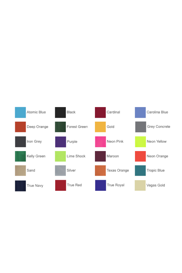 3.8 oz. 100% poly. Moisture-wicking. Breathable. Removable tag. Set-in sleeves.