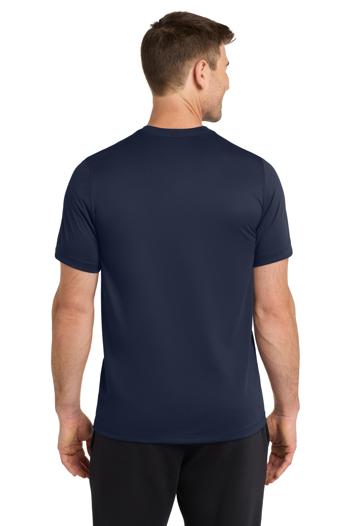 4 oz. 100% poly jersey. (White is 4.5 oz 100% poly jersey.) Built for a variety of training conditions, this legendary tee features Dri-FIT technology to wick away sweat and help keep you dry. Neck tape for durability. Heat-transfer label for tag-free comfort. A contrast heat transfer Swoosh design trademark on left chest. Contrast heat transfer Dri-FIT logo at right hem. Product Spec Sheet