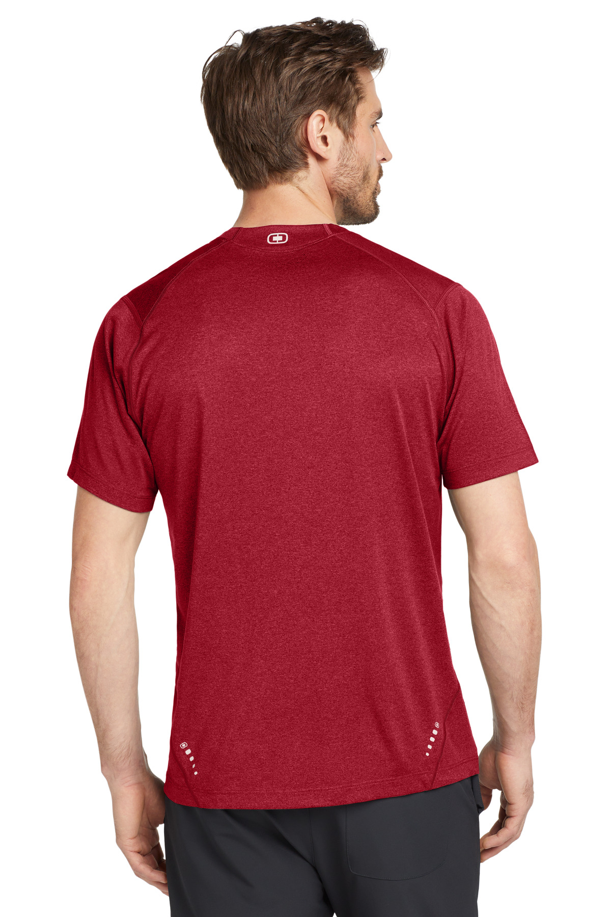 4 oz. 100% poly jersey (Pace Yellow is 4.6 oz.) Moisture-wicking. Ultra-Breathable. Flatlock seams. Modified, set-in sleeves. Self-fabric collar. Reflective OGIO Endurance details.