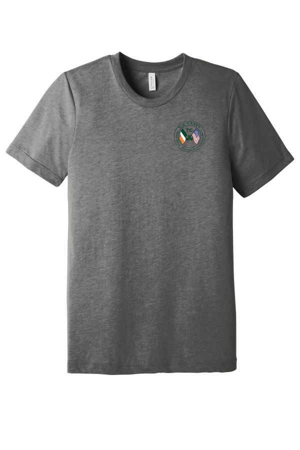 Unisex Triblend Short Sleeve Tee Screen Printed Logo Retail fit Tear-away label Side seamed Triblend Colors: 3.8-ounce 50/25/25 poly/Airlume combed and ring spun cotton/rayon 40 singles Black Heather Triblend: 70/15/15 Airlume combed and ring spun cotton/poly/rayon