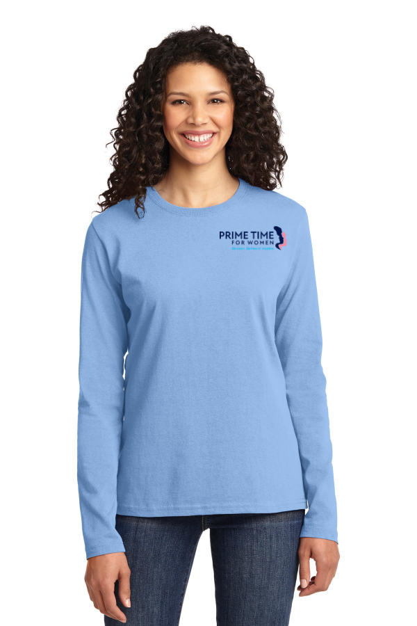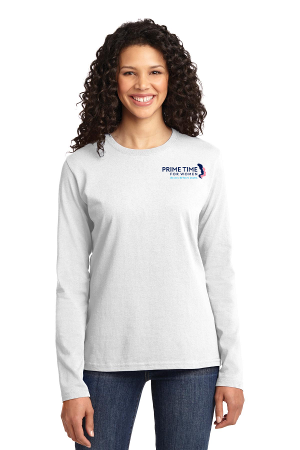 Ladies Port & Company Ladies Long Sleeve Core Cotton Tee Includes Embroidery An indispensable t-shirt in our classic silhouette--with a very friendly price.5.4-ounce 100% cotton 90/10 cotton/poly (Athletic Heather) 50/50 cotton/poly (Dark Heather Grey Heather Navy Neon Pink) Side seamed with a contoured body for a feminine fit Open hem cuffsRemovable tag for comfort and relabeling Product Spec Sheet Color Swatch