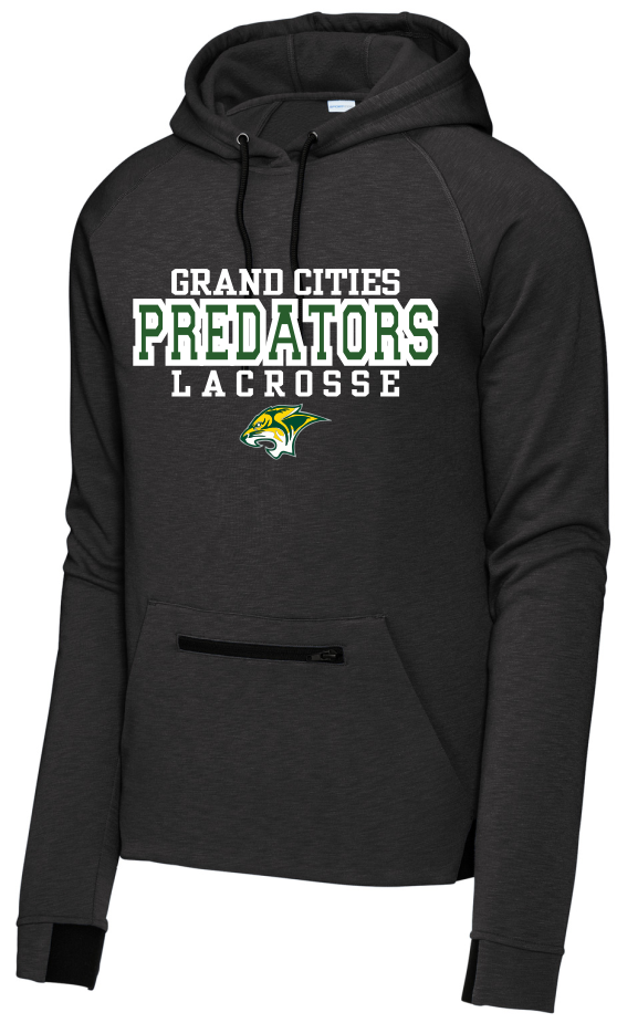 Description Achieve what you strive for in this elevated style that has a soft natural hand and a slub appearance. PosiCharge technology keeps the colors strong and vibrant. 8.9-ounce 90/10 poly/cotton fleece Three-panel hood Tear-away removable label Raglan sleeves with coverstitching Zippered mesh pocket on front pouch pocket Half elastic half self-fabric cuffs and hem for comfort