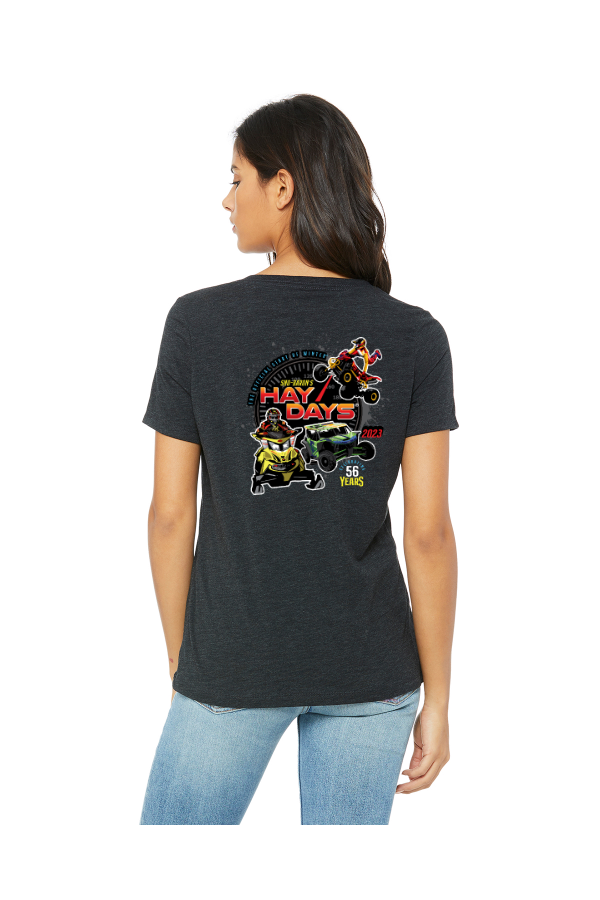 Ladies Relaxed Triblend V-Neck T-Shirt Ladies Relaxed Triblend V-Neck T-Shirt 6415 3.8 oz., 40 singles; 50% polyester, 25% Airlume combed and ring-spun cotton, 25% rayon; Pre-shrunk; Relaxed fit; Side-seamed; Tear away label ; Sustainably produced; WRAP certified and FLA participating company; Bella+Canvas uses sustainable manufacturing processes with blue sign certified dyes, efficient dye houses that adhere to the state of Californias EPA regulations around waste water treatment and usage, and cutting facilities in Los Angeles that run on partial solar power with comprehensive recycling programs for paper waste and fabric scraps.;
