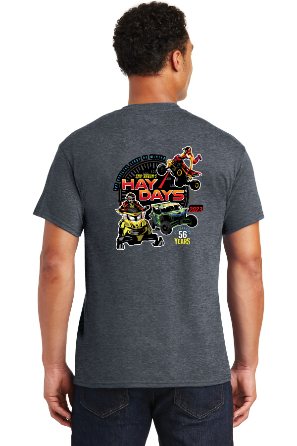 Description 5.5-ounce 50 cotton/50 polyDryBlend moisture-wicking propertiesTearaway labelNon-topstitched classic width rib collar Taped neck and shouldersPlease note: This product is transitioning from heat transfer labels to tearaway labels. Your order may contain a combination of both labels.