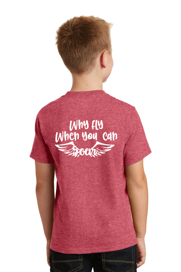 5.4-ounce 100% cotton, 50/50 cotton/poly (Heather Red)