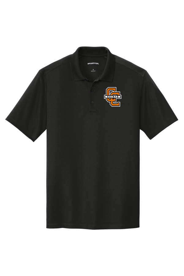 4.3-ounce 100% polyester micropique UPF rating of 50 Tag-free label Flat knit collar 3-button placket Pearlized buttons Angled shoulder seams Embroidered