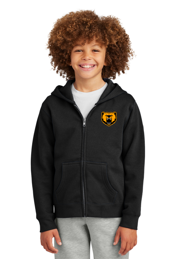 Youth V.I.T District Youth V.I.T. Fleece Full-Zip Hoodie DT6102Y An ideal canvas for decorators this soft fleece is everything and more at an unbeatable value. 8.3-ounce 65/35 ring spun cotton/polyester 100% ring spun cotton face (Solids Light Heather Grey) 60/40 ring spun cotton/polyester (Royal Frost Heathered Charcoal) Jersey-lined two-piece hood Dyed-to-match twill neck tape 1x1 rib knit cuffs and hem No drawcord Side seamed Tear-away label