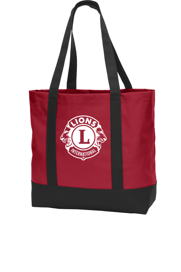 Description This classic go-anywhere tote is perfect for the beach market and beyond. 600 denier polyester canvas Self-fabric handles Dimensions: 14 h x 14 w x 5.5 d; Approx. 1 078 cubic inches. printed on both sides. Dk Charcoal, Chili Red & Classic Green printed with white logo. Black & Twilight Blue printed with gold logo.