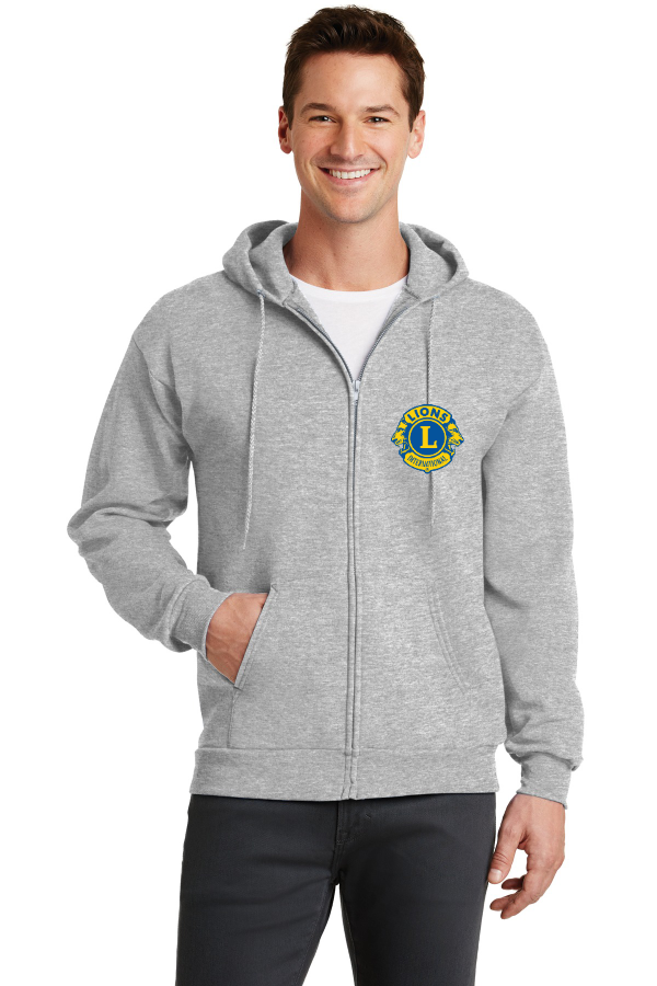 A versatile full-zip hooded sweatshirt in our core weight. 7.8-ounce 50/50 cotton/poly fleece Air jet yarn for a soft pill-resistant finishSelf-fabric hood liningDyed-to-match drawcordsYKK metal zipperFront pockets. 2-color embroidered Lions logo.