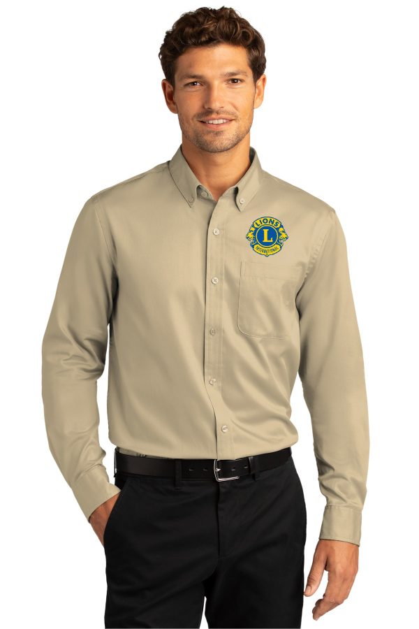The ultimate in professional performance this wrinkle-resistant shirt also releases stains. The soft smooth fabric gives you a polished look that s comfortable enough for year-round wear. 4.3-ounce 55/45 cotton/poly twillStain releaseWrinkle-resistantButton-down collarDyed-to-match buttonsLeft chest pocketRounded adjustable cuffsBack yoke with box pleat Product Spec Sheet Color Swatch