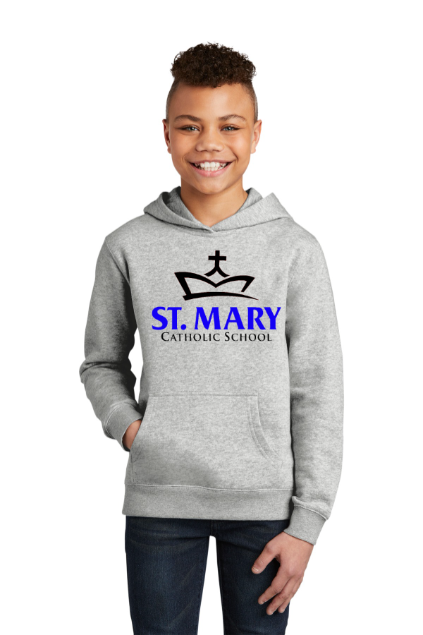 Printed Hooded Sweatshirt - School Approved Youth and adult sizes. Super soft fleece is everything and more at an unbeatable value. 8.3-ounce 65/35 ring spun cotton/polyester 100% ring spun cotton face (Solids Light Heather Grey)60/40 ring spun cotton/polyester (Royal Frost Heathered Charcoal) Jersey-lined two-piece hoodDyed-to-match twill back neck tape No drawcord Side seamed 1x1 rib knit cuffs and hem Tear-away label.