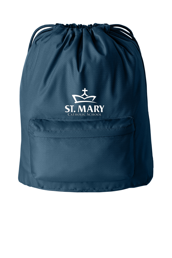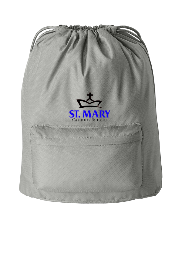 Description 150D matte diamond polyester Dyed-to-match drawcord closure Adjustable dyed-to-match web straps Front zippered pocket Dyed-to-match hardware Bottom base helps cinch remain upright when placed on the ground Dimensions: 18 h x 13.75 w x 6.5 d Capacity: 1 324.5 cu. in./22 L Weight: 0.4 lbs./0.18 kgNote: Bags not intended for use by children 12 and under.