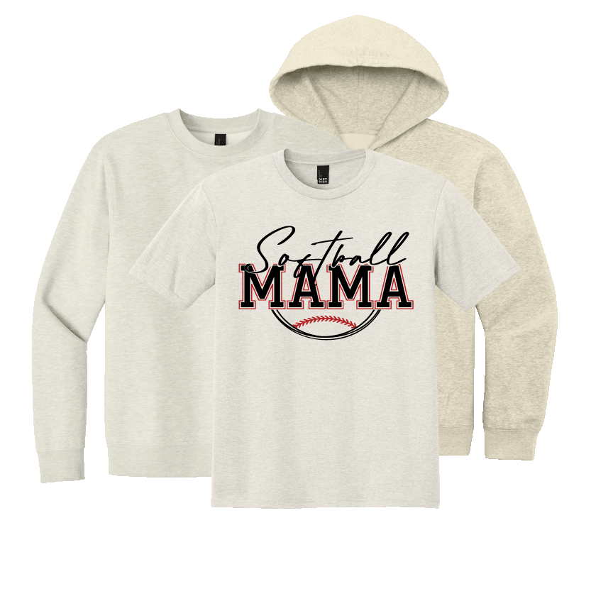 Baseball Mama or Softball Mom Choose from Tee, Crew sweatshirt, or Hoodie Classic fit and super comfortable in a cozy oatmeal heather color, these District brand pieces include the back design in the price. Upgrade to a sweatshirt or hoodie for extra warmth! Perfect for both Softball Mama and Baseball Mama.