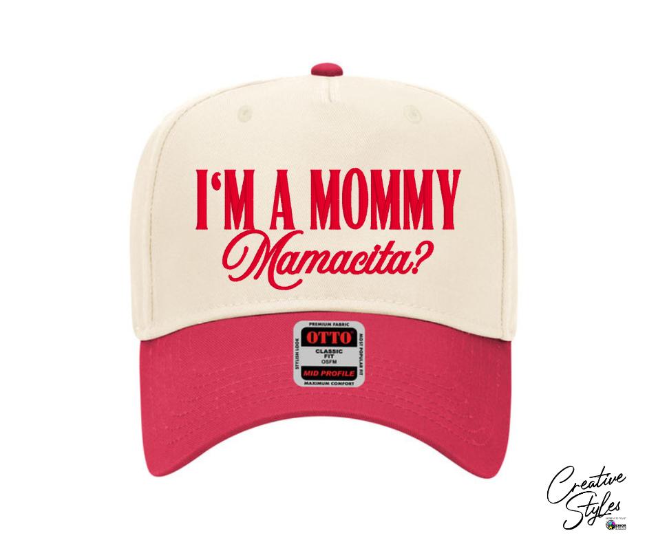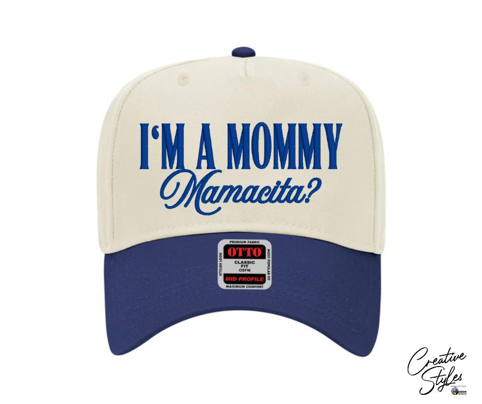 Mommy Mamacita Embroidered Hat Otto Baseball Cap (or comparable style & brand based on availability) This timeless trendy cap is made of cotton blend twill, has a structured 5-panel mid-profile crown with a snapback adjustable closure.