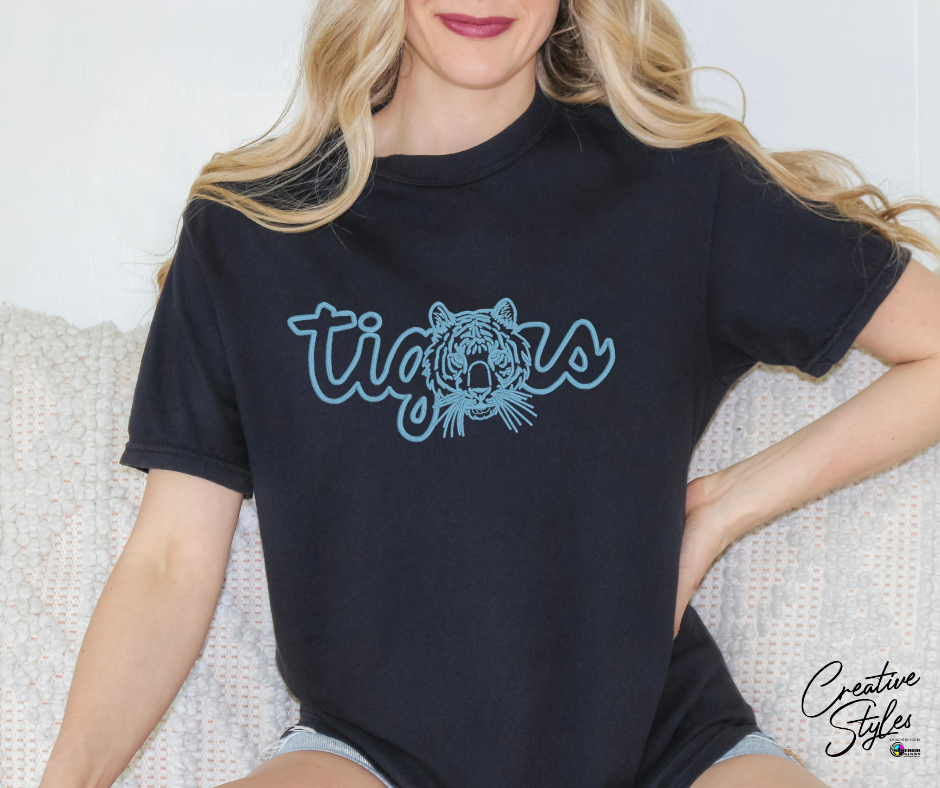 Tigers Embroidered Tee Unisex Adult Comfort Colors Tee Soft, unisex, embroidered tee! If a color you want is not listed for the tee or thread, please put a note on your order!
