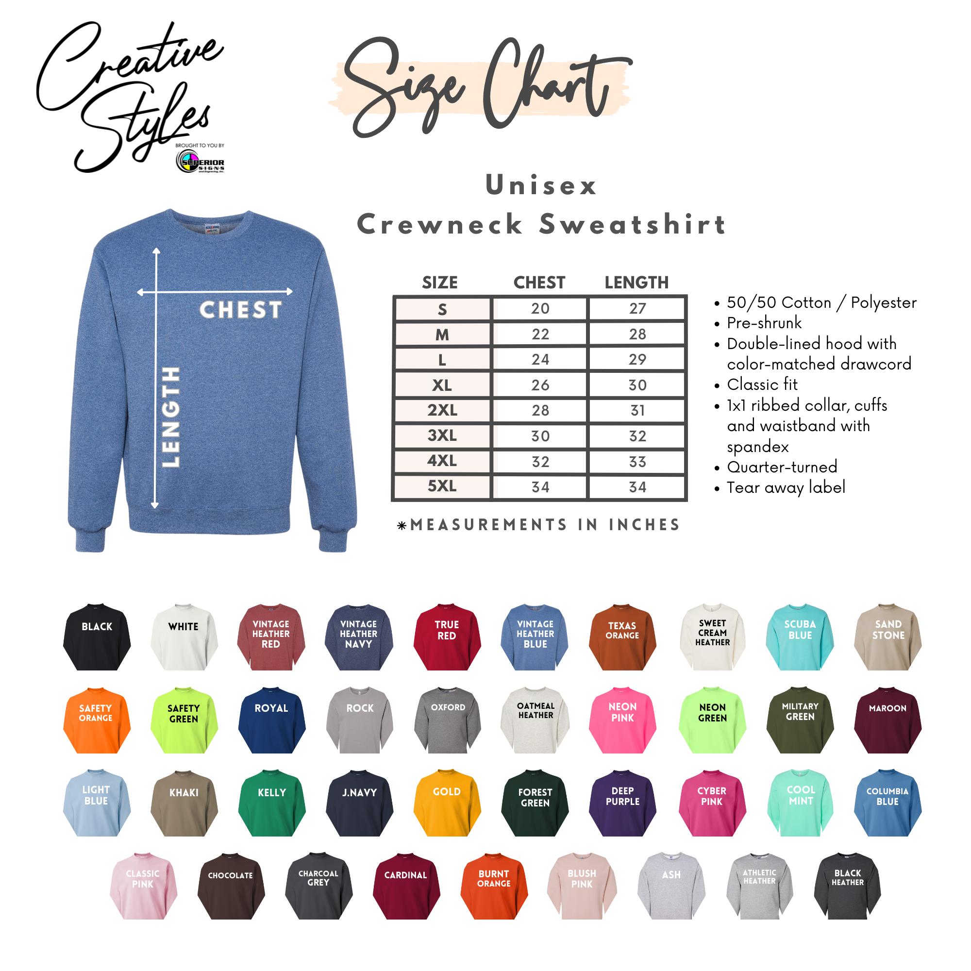 Description Stay cozy in our soft fleece. This crewneck fits TTS or size up if an oversized fit is desired. If a sweatshirt or thread color is not listed that you want, please put a note on your order!