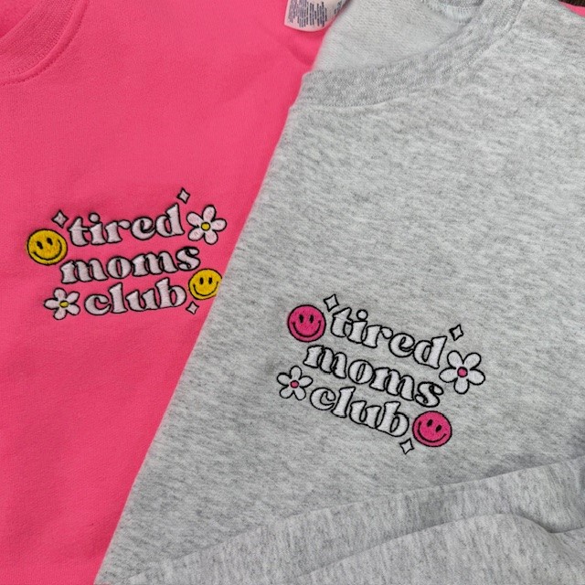 tired moms club Embroidered Crewneck Unisex Crewneck Sweatshirt Stay cozy in our soft 50/50 fleece. This crewneck fits TTS or size up if an oversized fit is desired.