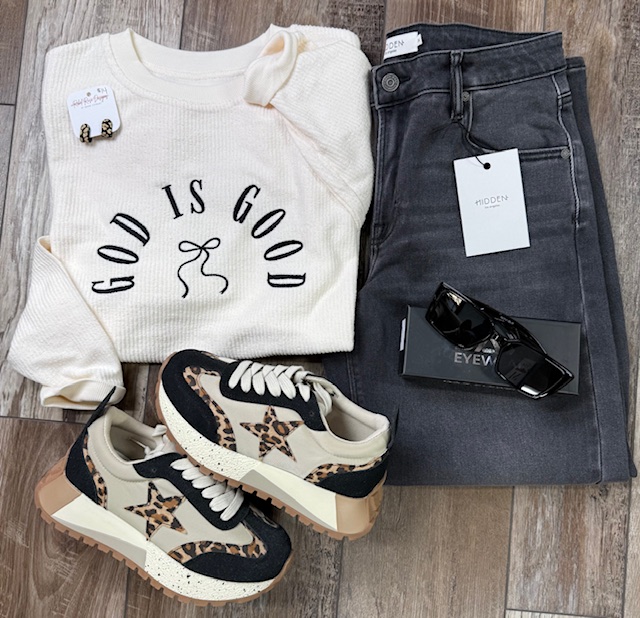 God is Good Embroidered Corded Crewneck Sweatshirt