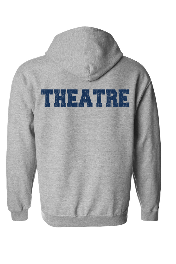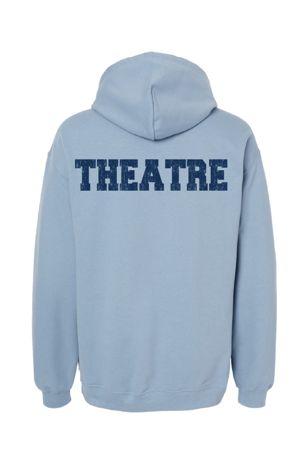 NV Theatre 25f.3 Stone Bluie, Sport Gray or White hoodie Stone blue, sport gray or white soft style hooded sweatshirt Gildan stone blue, sport gray or white 80/20 cotton/poly soft style hooded sweatshirt with navy distressed left crest and back imprints