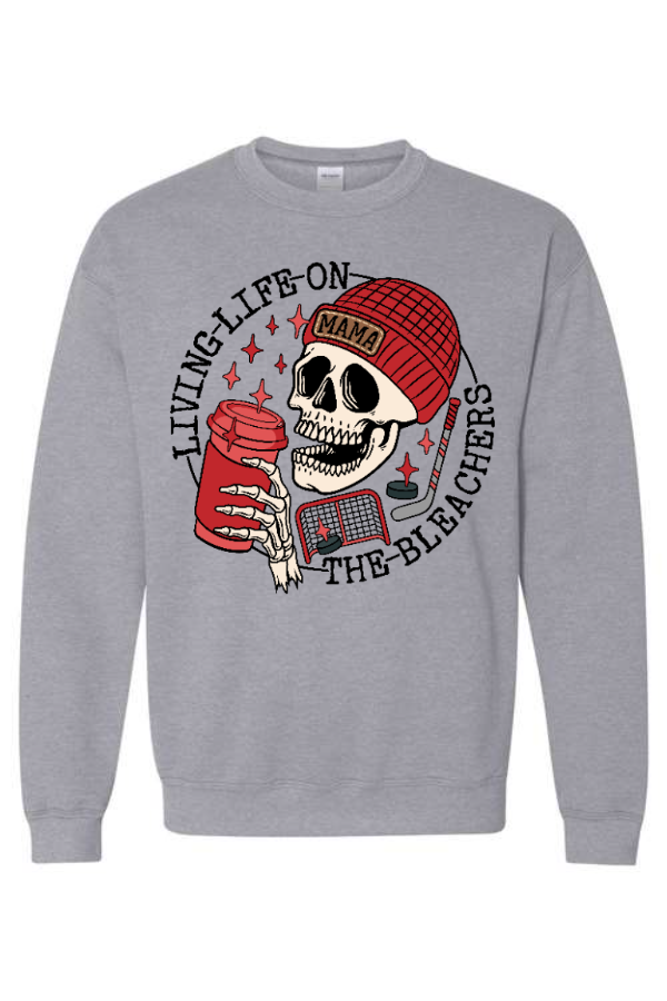 RED Hockey Mama Livin' Life on the Bleachers Crewneck Sweatshirt