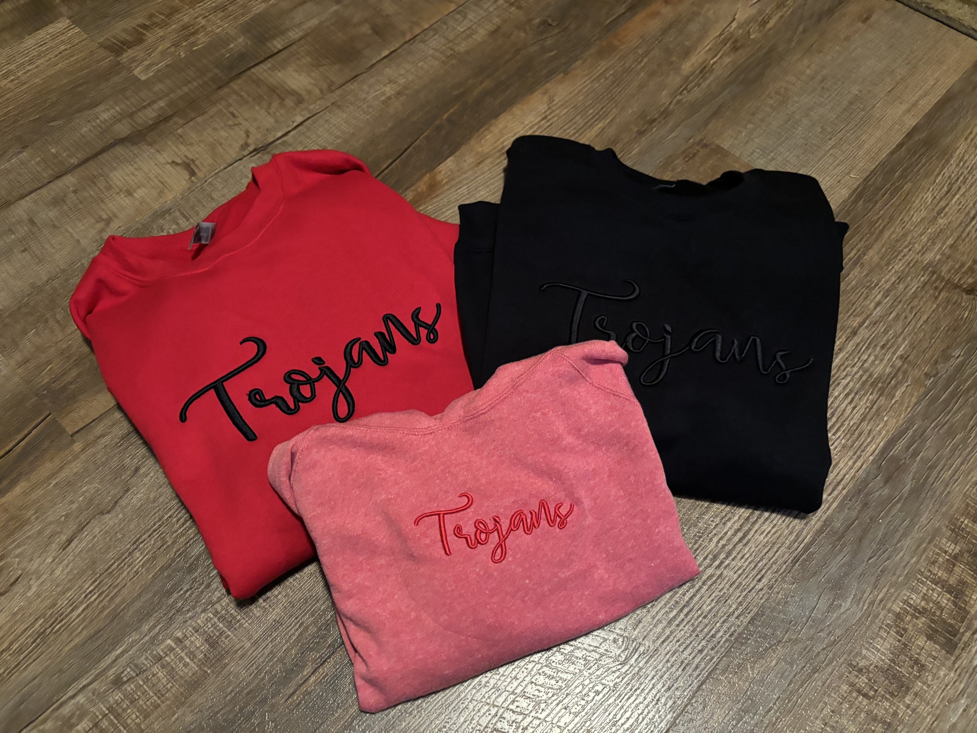 Trojans 3D Embroidered Crewneck Sweatshirt Trojans 3D Embroidered Crewneck Sweatshirt 8 oz./yd. 50/50 cotton/polyester. 20 singles. Classic fit. 1x1 rib with spandex for enhanced stretch and recovery.