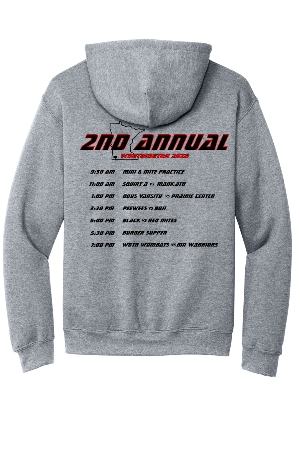 HOCKEY DAY 2026 Hoodie HOCKEY DAY 2026 Hoodie 8 oz./yd² 50/50 cotton/polyester, 20 single. Classic fit. Double-lined hood with color-matched drawcord. 1 x 1 rib with spandex for enhanced stretch and recovery. Pouch pocket.