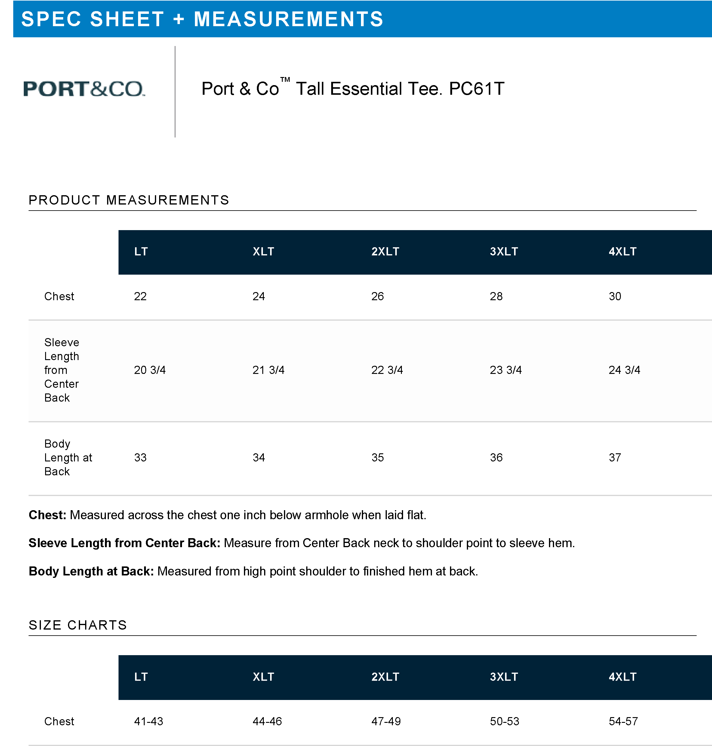 TALL Size Chart