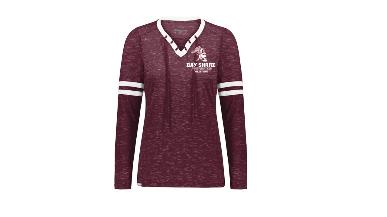 Eco-Revive® product featuring 95% recycled polyester/5% cotton Wicks moisture Ladies' fit Tag-free label Lace up neck on Ladies'