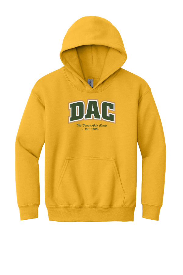 Youth Embroidered DAC Hoodie Gildan - Youth Heavy Blend Hooded Sweatshirt. 18500B Keep warm this winter with this embroidered sweatshirt. Features 2 different 3 color applique embroideries: 1. Light Maroon, White & Gold or Forest Green, White & Gold on the color of sweatshirt you select. Not seeing the color of shirt you want, contact us. Design under final review and may vary.