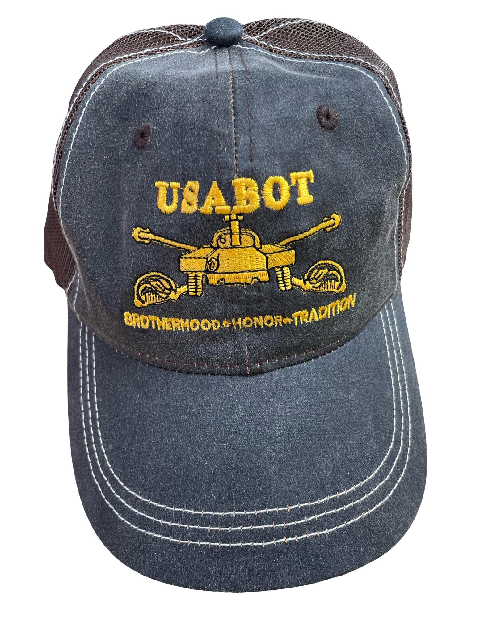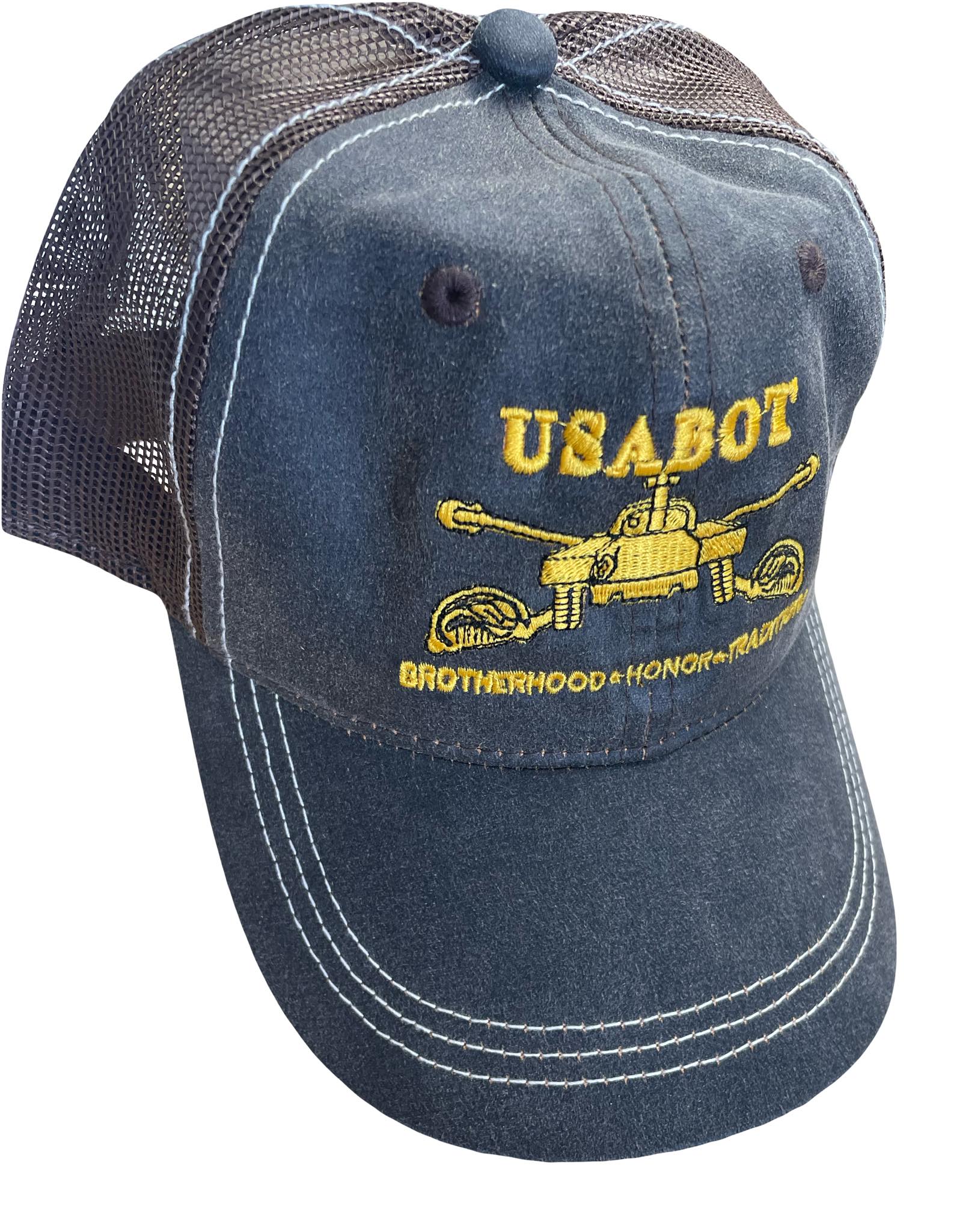 Weathered Brown Mesh Back CapWeathered Cap with USABOT EmbroideryOur Weathered Cotton Mesh Back Cap is one of the best selling hats. It features weathered cotton front panels and mesh back panels giving the hat a premium feel and fit. The material on this hat is medium washed and has heavy construction stitching on it. You can adjust this cap to the perfect size with the hook/loop tape closure. |