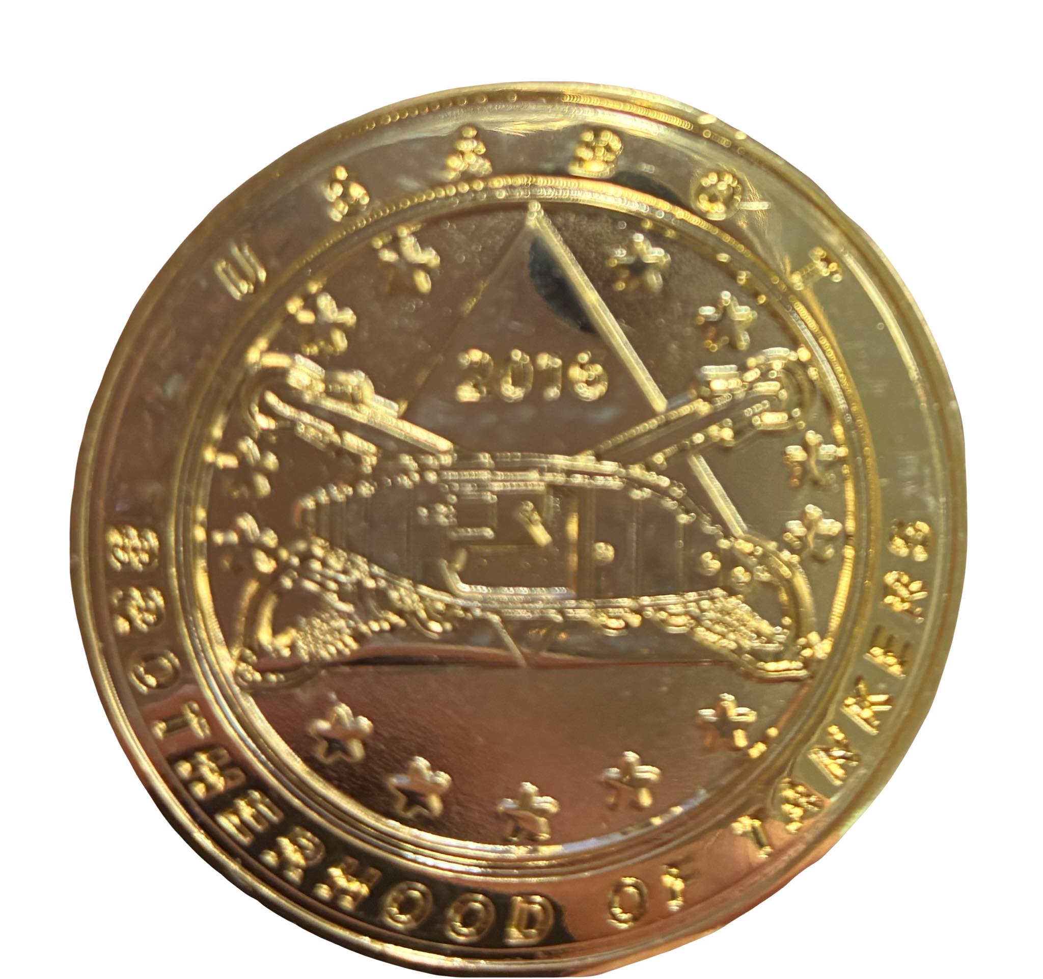 2016 "They've Got Us Surrounded Again Coin 2016 USABOT Coin Measures 1 1/2 inches. Close-out while supply lasts! This is the 2016 Coin. The top front says: THEY'VE GOT US SURRONDED AGAIN. The bottom front says: THE POOR BASTARDS.