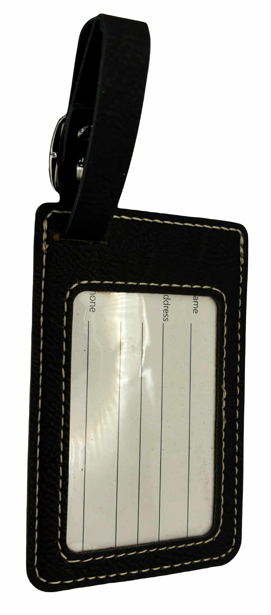 4 1/4" x 2 3/4" Black/Gold Lasered Leatherette Luggage Tag