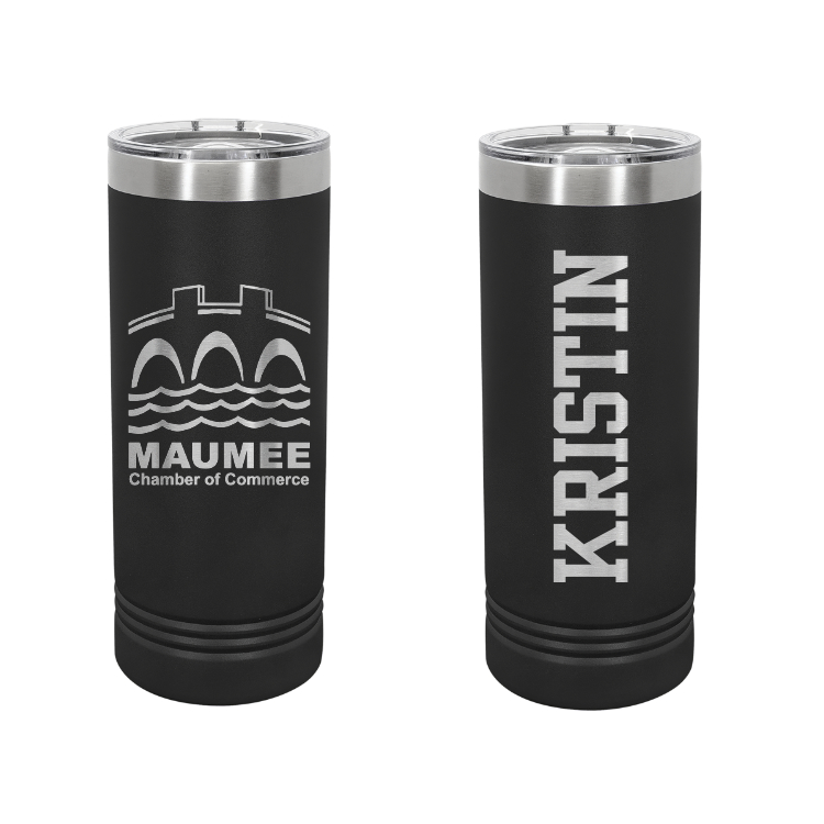 Maumee Chamber Skinny Tumbler Polar Camel Skinny Tumbler With Slider Lid This tumbler is perfect for an easy grasp with smaller hands and is available in Black, Royal Blue, Dark Gray and White vibrant colors of Powder Coated finish. The included slider lid helps to prevent spills.