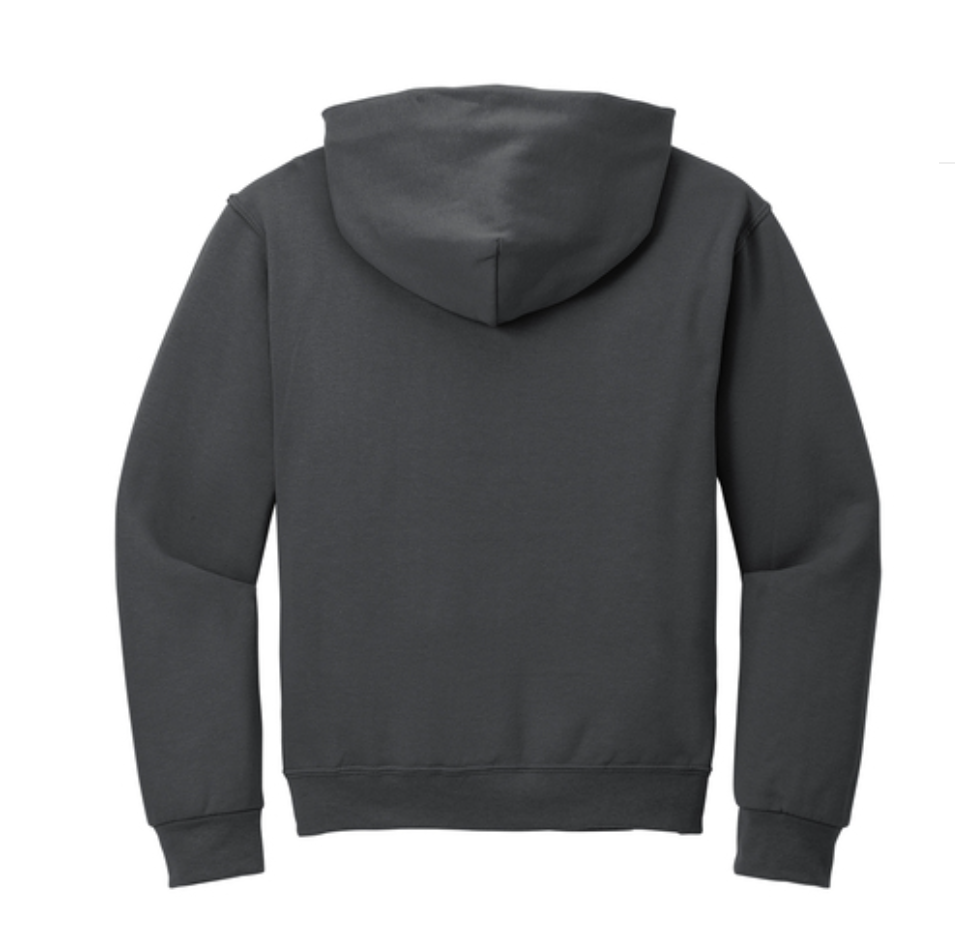 Hoodie w/ No Back Jerzees NuBlend Pullover Hooded Sweatshirt. 996M 8-ounc. 50/50 cotton/poly. NuBlend pill-resistant fleece. High stitch density for a smooth printing canvas. Two-ply hood with grommets and dyed-to-match. tipped and knotted drawcord. 1x1 rib knit in cuffs and waistband. Front pouch pocket. Double-needle coverseamed neck armholes and waistband. Product Spec Sheet