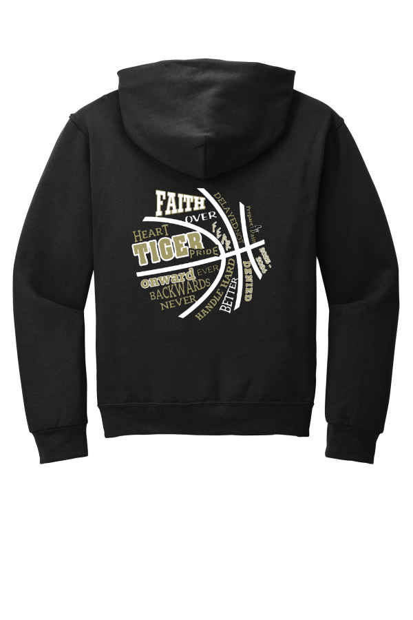Description 8-ounce 50/50 cotton/poly NuBlend pill-resistant fleece. High stitch density for a smooth printing canvas Two-ply hood with grommets and dyed-to-match tipped and knotted drawcord1x1 rib knit in cuffs and waistband Front pouch pocket Double-needle cover seamed neck armholes and waistband