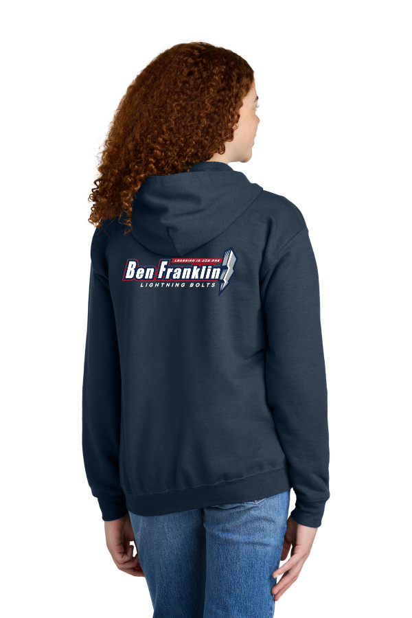 Youth Heavy Blend Full-Zip Hooded SweatshirtGildan Youth Heavy Blend Full-Zip Hooded Sweatshirt. 18600B8-ounce 50/50 US cotton/poly Unlined hood No drawcords Front pouch pockets Overlapping fabric across plastic zipper for full frontal printing 1x1 rib with spandex for enhanced stretch and recovery Classic fit seamless body Recycled high-performing black tear-away labelProduct MeasurementsProduct Spec Sheet |