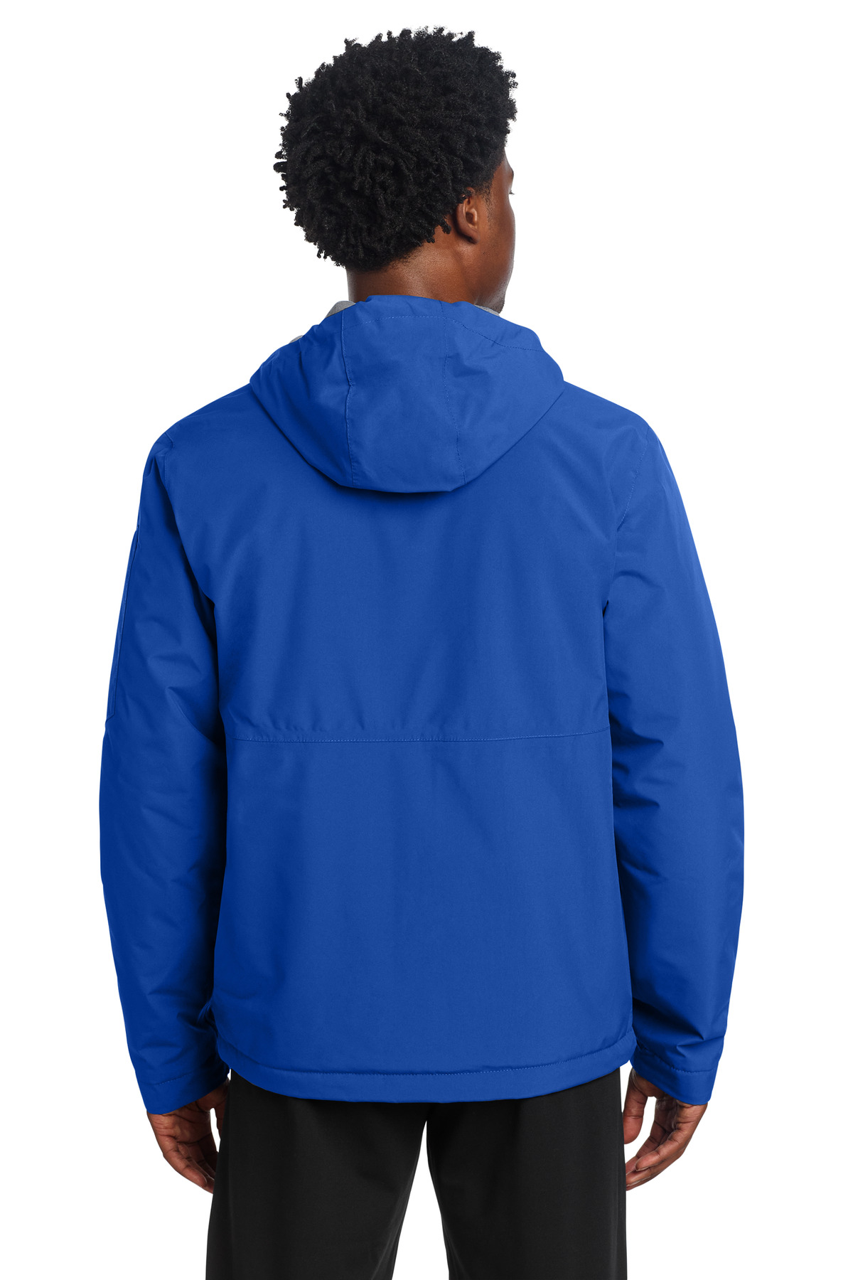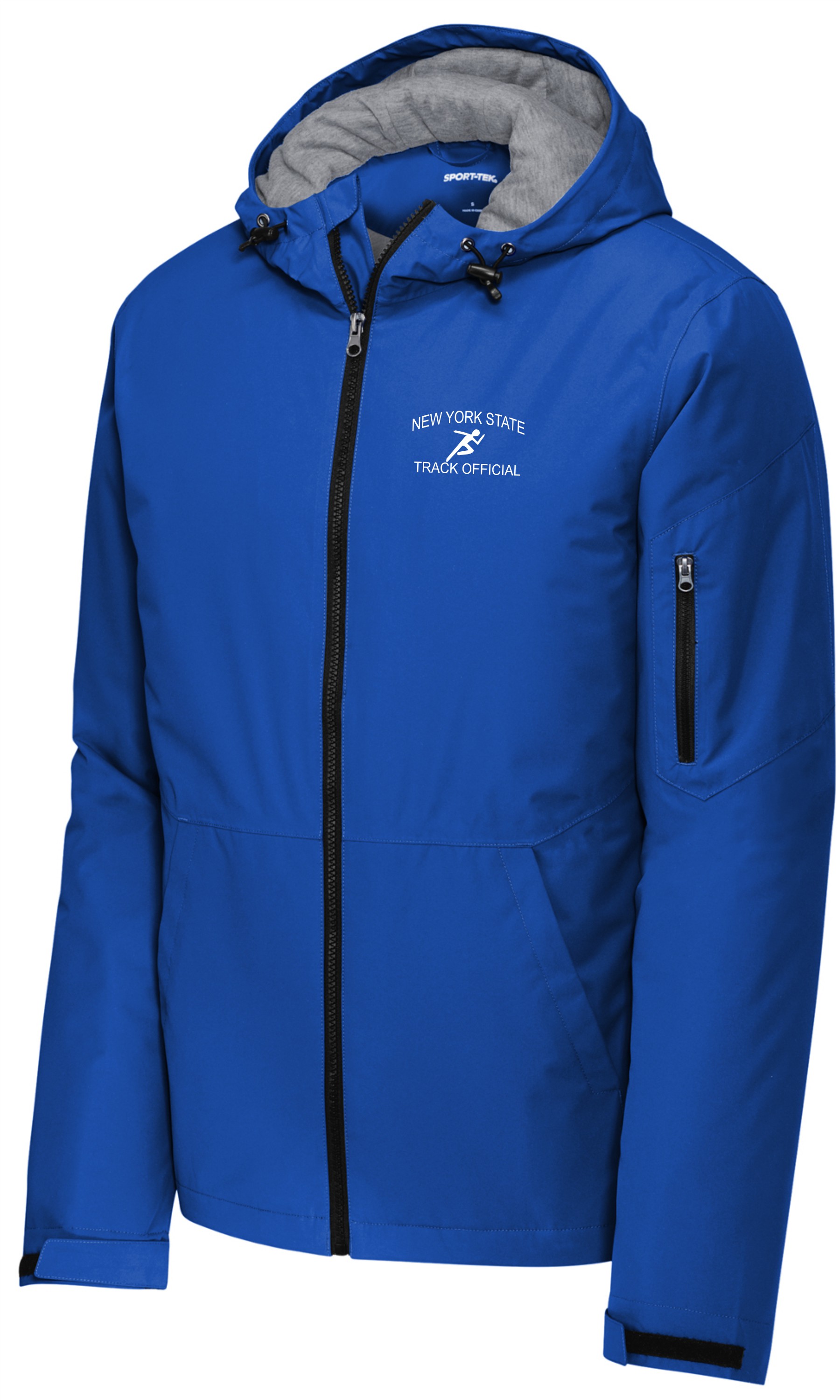 Waterproof Insulated Jacket-Adult Sport-Tek Waterproof Insulated Jacket JST56 This fully seam-sealed wind-resistant insulated jacket offers outstanding waterproof protection to help keep you dry in the stands or on the street. 100% polyester with water-resistant face coating. Jersey-lined body and hood. 2.4-ounce polyfill insulation in body. 1.8-ounce polyfill insulation in hood and sleeves. Polyester taffeta sleeves for easy on/off 5000MM fabric waterproof rating 3000G/M2 fabric breathability rating. Tag-free label. Three-panel hood with drawcord and toggles. Exposed molded zipper. Left arm zippered pocket. Adjustable self-fabric tab cuffs with hook and loop closures. Adjustable locking drawcord at hem. Product Spec Sheet Color Swatch