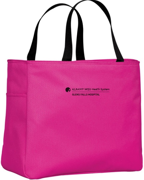 Essential Tote Port Authority - Essential Tote. B0750 This durable tote comes in a rainbow of colors and is a tremendous value.600 denier polyester canvas Large main section with small interior self-fabric pockets Exterior side pocket Web handles Dimensions: 12 h x 12 w x 6.5 d Approx. 936 cubic inchesNote: Bags not intended for use by children 12 and under. Includes a California Prop 65 and social responsibility hangtag. Product Spec Sheet Color Swatch