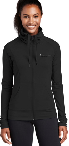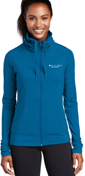 SportWick Stretch Jacket-Ladies Sport Wick Stretch Full Zip Jacket 90/10 poly/spandex jersey. Great transitional season jacket. w/Left Chest Embroidery A stretchy, moisture-wicking performance jacket with a soft-brushed backing and unique cowl collar. 90/10 poly/spandex jersey. Tag-free label. Zip-through cowl collar with ruching. Dyed-to-match drawcord. Dyed-to-match Sport-Tek logo neck taping. Reverse coil zipper. Raglan sleeves. Front pouch pockets. Ruching at cuffs. Self-fabric hem.