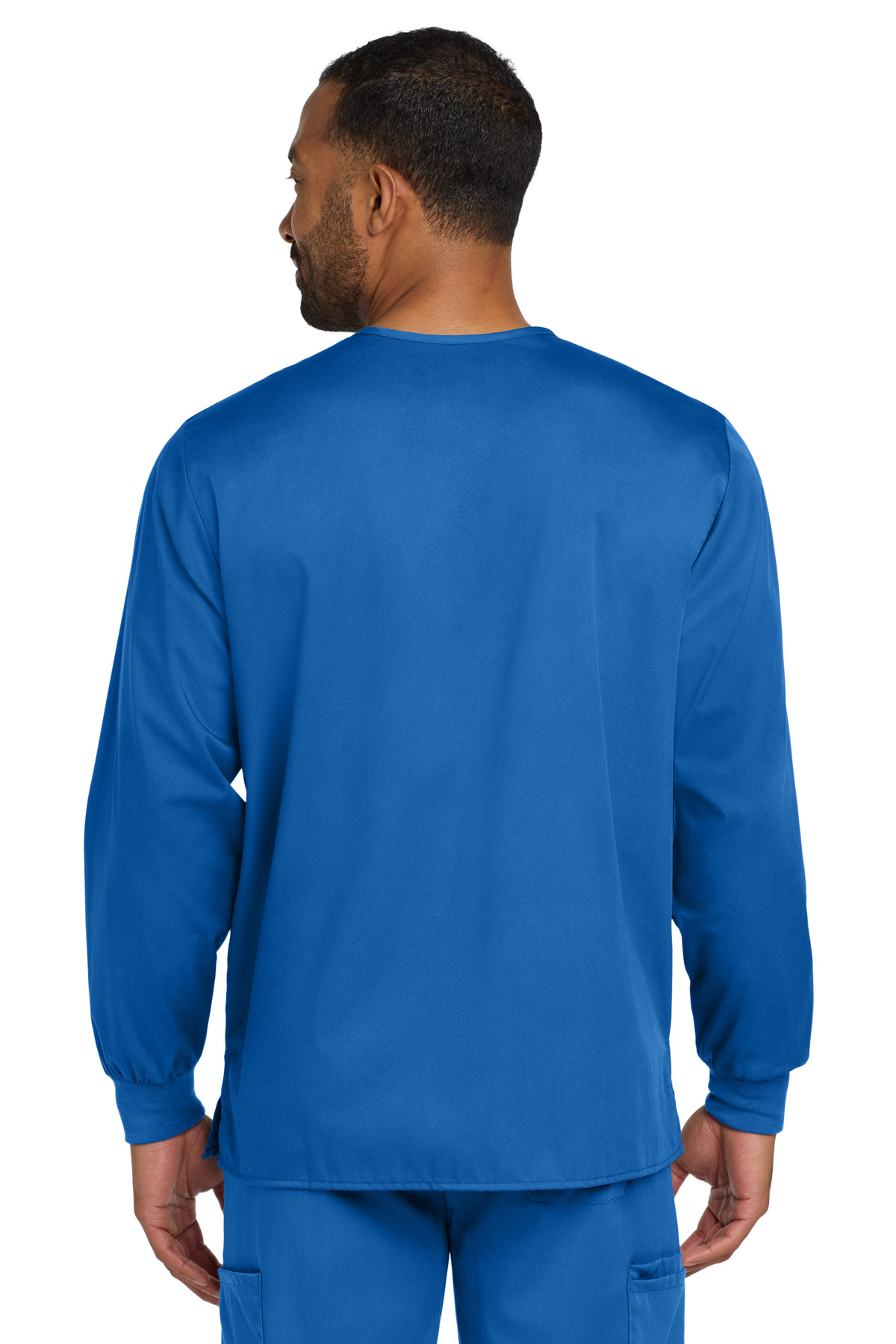 MENS WonderWink Unisex WorkFlex Snap-Front Scrub Jacket Wink Unisex WorkFlex Snap-Front Scrub Jacket WW3080 65/35 poly/cotton. Mechanical stretch 5-snap front closure. Shoulder badge loop. Rib knit cuffs. Top-loading front pockets. left interior hidden accessory loops. Side vents. Wink heat transfer logo at left pocket. Classic fit. Product Spec Sheet Color Swatch